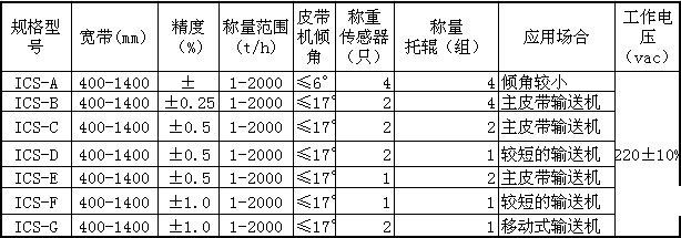 机械秤体、称重传感器、数字脉冲测速传感器、称重仪表,有单杠杆单托辊和双杠杆双托辊或四托辊等几种结构可供选择,具体尺寸可按用户要求订制。